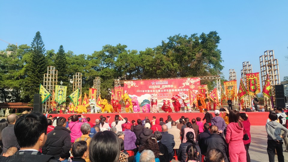 云浮体彩新春醒狮团拜会上演 传统民俗焕新彩