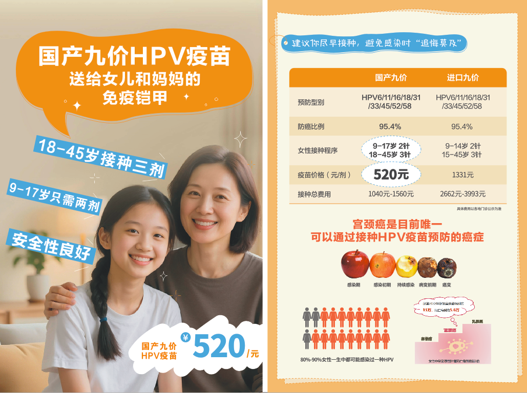 可及性更高: 随着国产疫苗的加入,预计未来HPV疫苗的供应将更稳定,接种更方便。国产九价HPV疫苗520元/针的亲民价格,让更多女性能够“想打就打,打得着”,真正实现普惠。