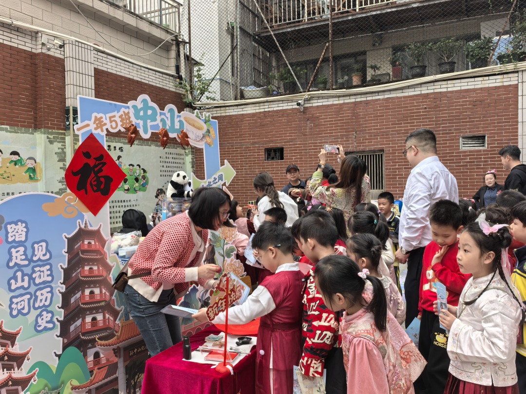 记者了解到,本次庙会以“年级承包湾区城,义卖联动暖童心”为核心,全校各班分别对应广州、深圳、珠海、佛山、香港、澳门等大湾区城市群,各班级精心打造专属城市文化游戏宣教点+义卖站点。“活动前期,各个班级抽签确定对应哪个城市,各班老师引导孩子们去了解这座城市的特色,例如美食、非遗、景点等。”袁慧介绍,学校鼓励学生们在寒假外出旅游、返乡探亲期间,打卡大湾区景点,争当旅游推荐官。