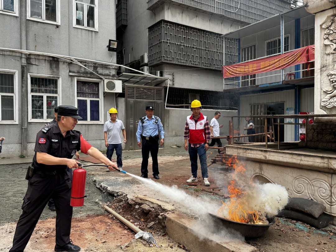 寺前社区开展灭火器规范使用方法教学。通讯员供图