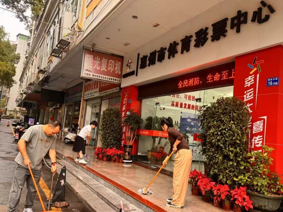 惠州体彩对办公区域及周边环境进行全面清扫。惠州体彩供图